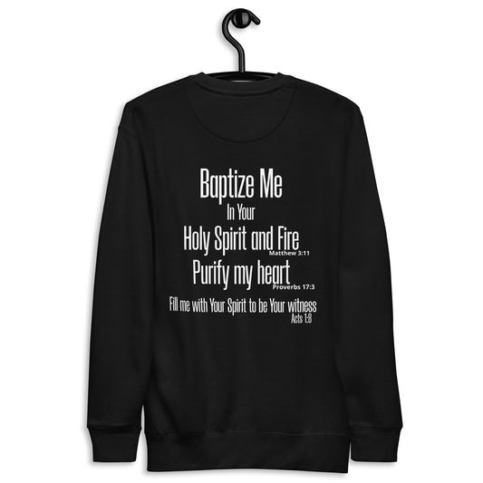 Purified by fire, Baptize me in your fire, Purify my heart, Unisex Premium Sweatshirt
