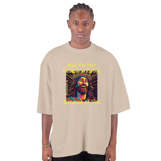 May His face radiate with Joy because of you, Jesus the joyful King, Joy, Oversized Drop-Shoulder Crewneck T-Shirt
